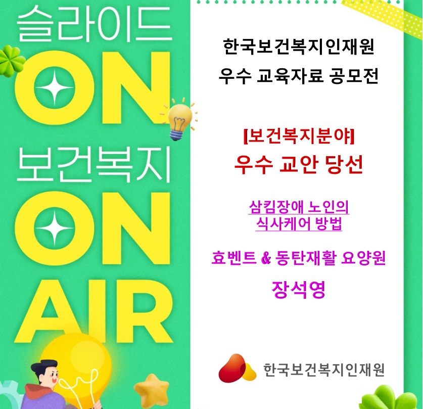 효벤트 장석영 대표 한국보건복지인재원 주최 보건복지분야 우수 교안 공모전 당선!