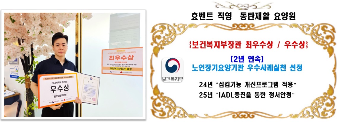 효벤트 직영 요양원-동탄재활요양원 2년 연속 우수사례관리 요양기관 보건복지부장관 상 수상